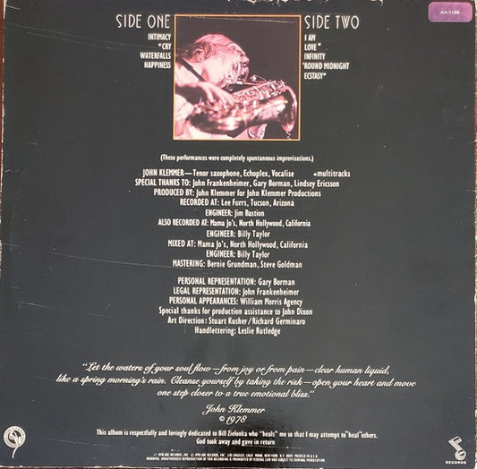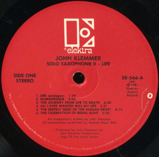 John Klemmer - Solo Saxophone II - Life (LP, Album)