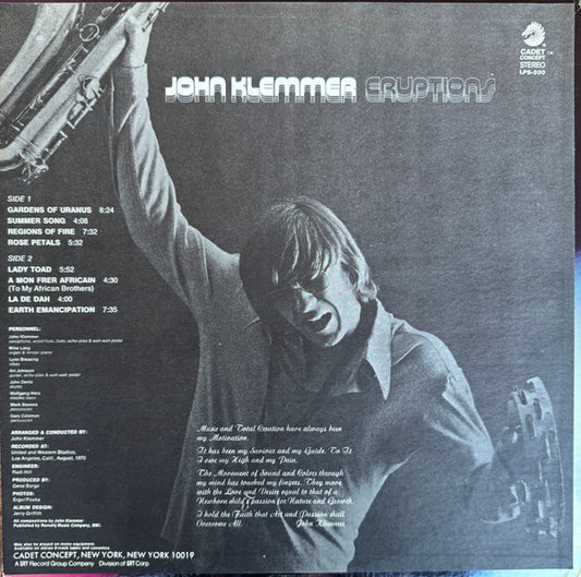 John Klemmer - Eruptions (LP, Album, Mon)