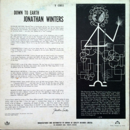 Jonathan Winters - Down To Earth (LP, Album, Mono)