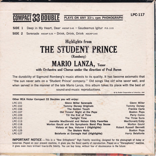 Mario Lanza - The Student Prince (7", EP, Mono)
