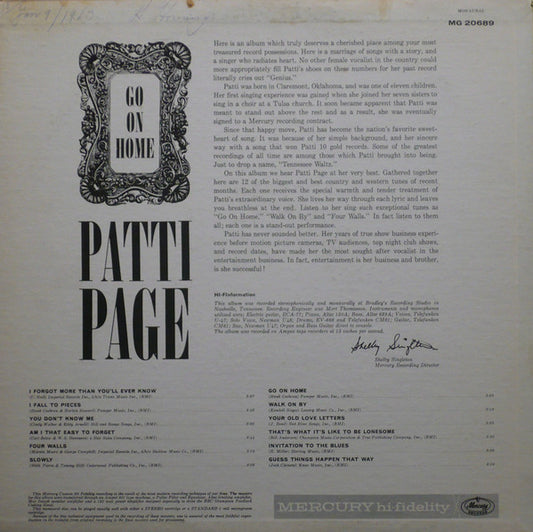 Patti Page - Go On Home (LP, Mono)