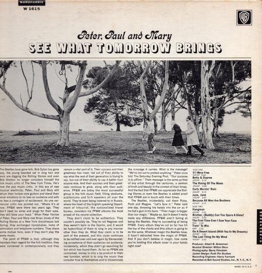 Peter, Paul & Mary - See What Tomorrow Brings (LP, Album, Mono, Ter)