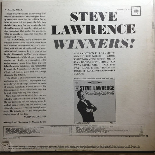 Steve Lawrence - Winners! (LP, Mono)