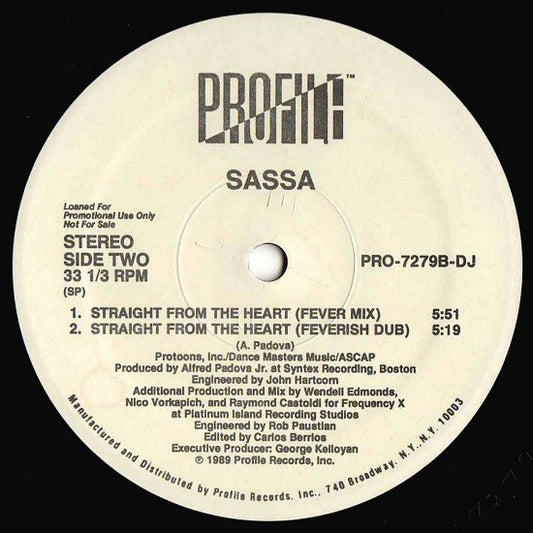 Sassa - Straight From The Heart (12", Promo)
