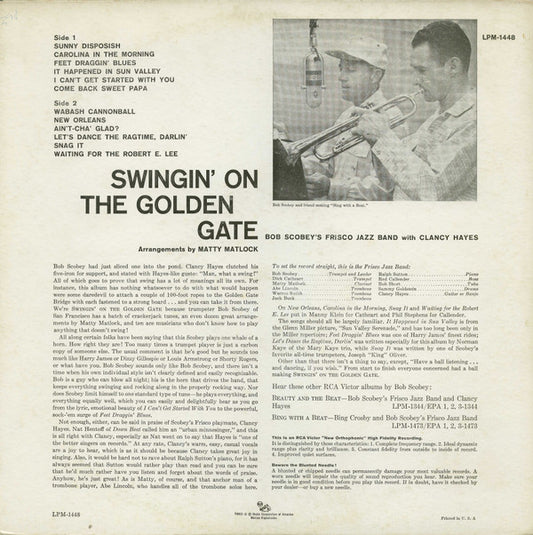 Bob Scobey's Frisco Band With Clancy Hayes - Swingin' On The Golden Gate (LP, Album, Mono)