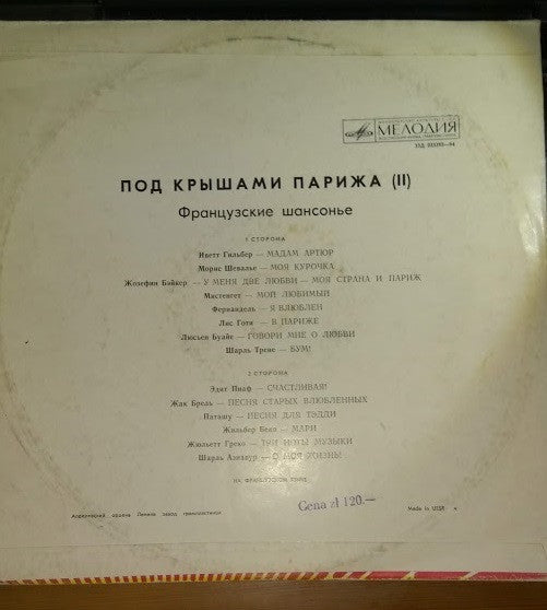 Various - Под Крышами Парижа (II) (Французские Шансонье) (LP, Comp, Mono)
