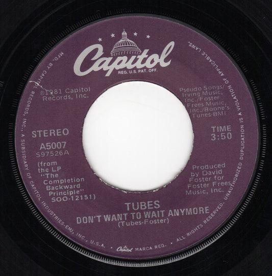 The Tubes - Don't Want To Wait Anymore (7", Single, Jac)