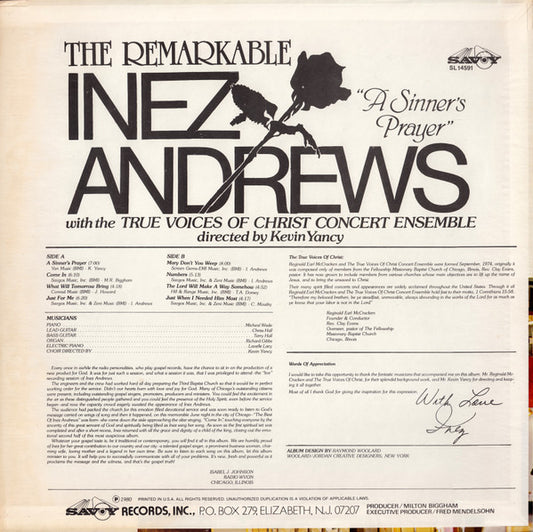 Inez Andrews With The True Voices Of Christ Concert Ensemble - Recorded "Live" In Chicago, Illinois (LP, Album)