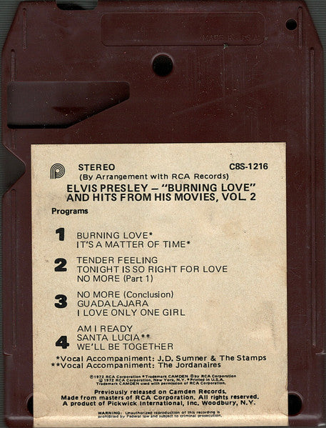 Elvis Presley - Burning Love And Hits From His Movies, Vol. 2 (8-Trk, Comp, RE)