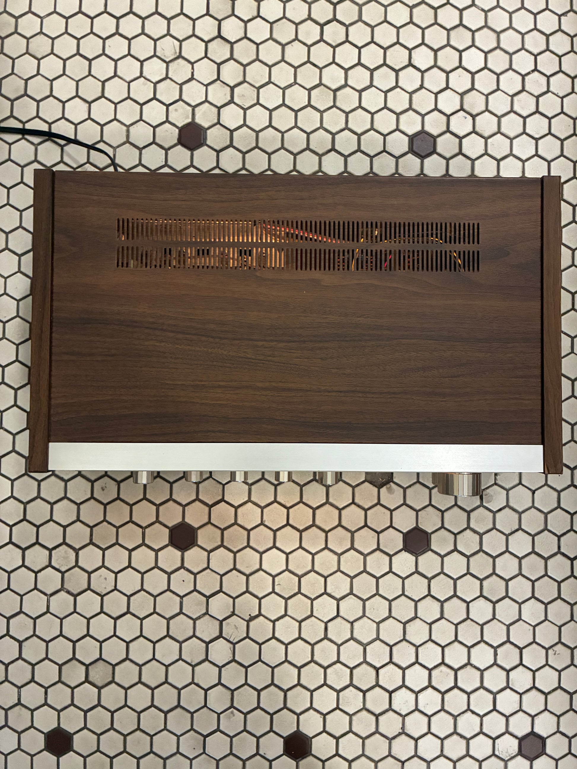 very light veneer peeling along bottom