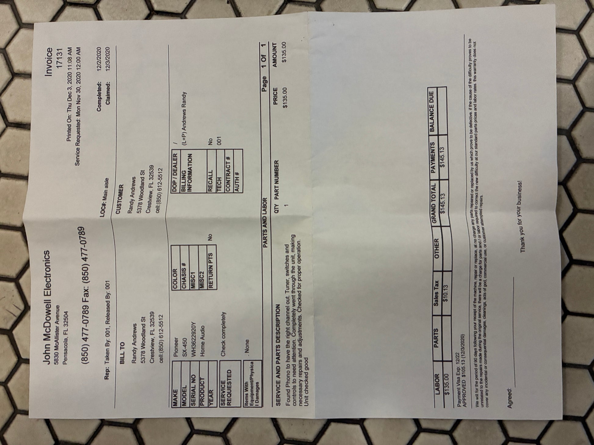 was professionally repaired and cleaned in 2020